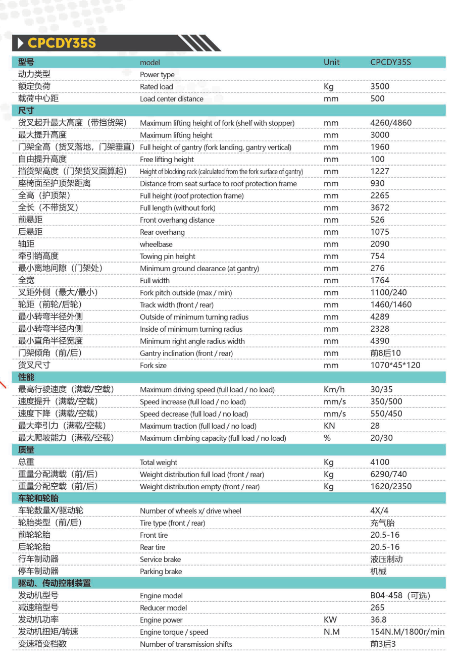 • 產品名稱: 浙江CPCDY3.5S越野叉車